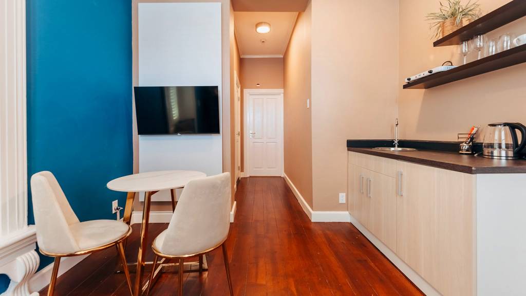 A selection of our rooms feature kitchenettes including microwaves, providing extra flexibility during your stay. Every room includes a mini-fridge, along with thoughtful amenities such as an iron and ironing board, hairdryer, and in-room safe. These carefully considered touches combine comfort and convenience allowing you to relax and feel truly at home during your stay at Atelier Skalo Boutique Hotel.